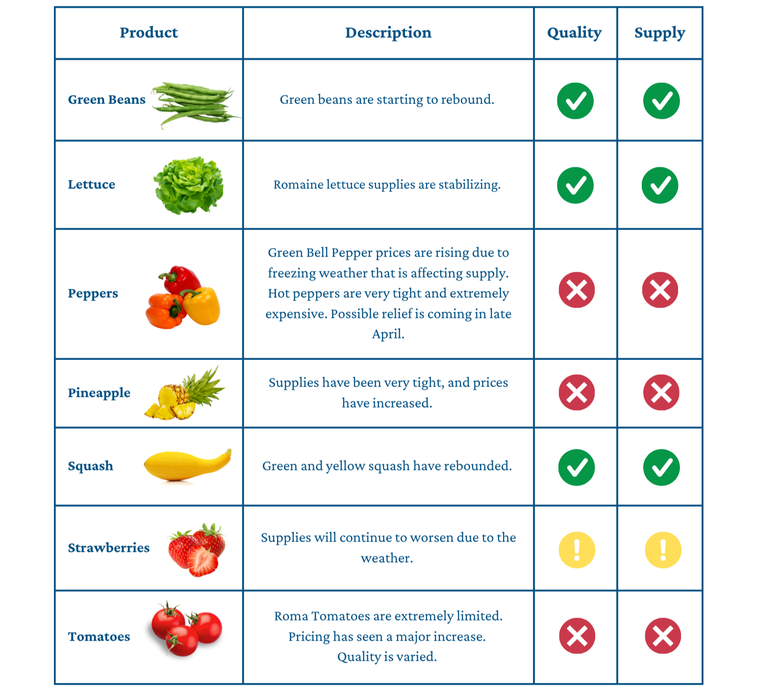 Welcome to this week’s Market Report from Cavalier Produce, your trusted wholesale produce distributor in Virginia. Each week, we share a visual snapshot of what’s available and what’s in peak season, with updates on quality and supply. Our goal as a local produce supplier is to help food buyers, chefs, and restaurant owners obtain the freshest produce to elevate their menu items.